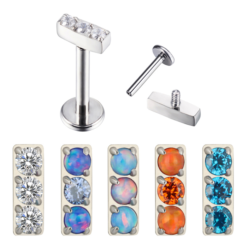 ASTM F136 Titanium 3 CZ Tile Top Labret