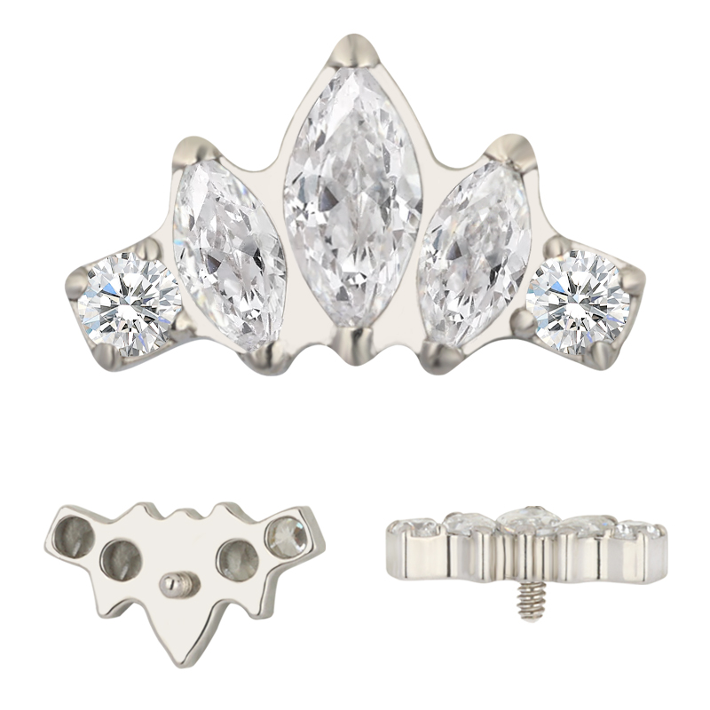 Titanium 3 Marquise CZ With 2 Round CZ on Side Internally Threaded Top
