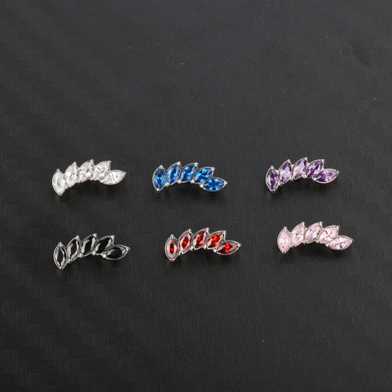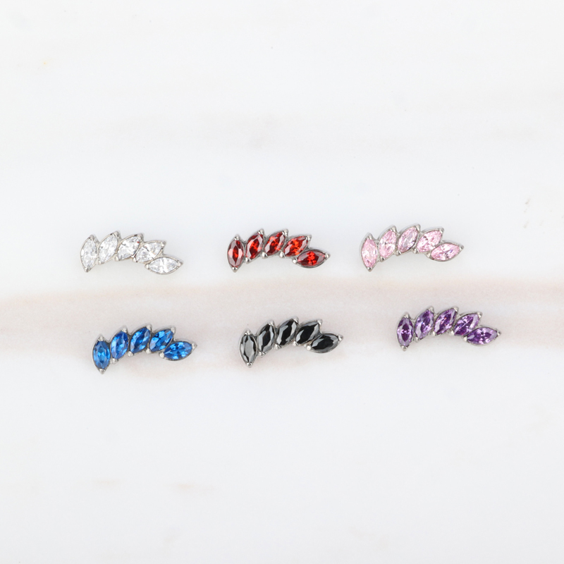 Titanium Prong Set Marquise 5 Gem Curved Fan Internally Threaded Top