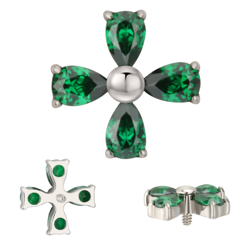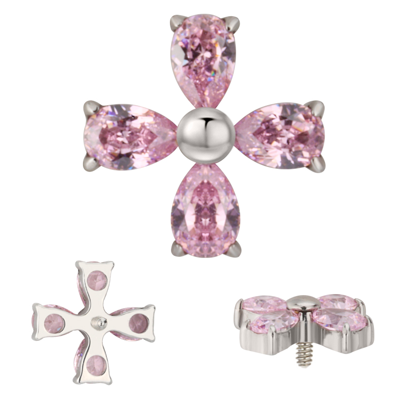 Titanium 4 Pear Shape CZ Prong Set Fan Internally Threaded Top
