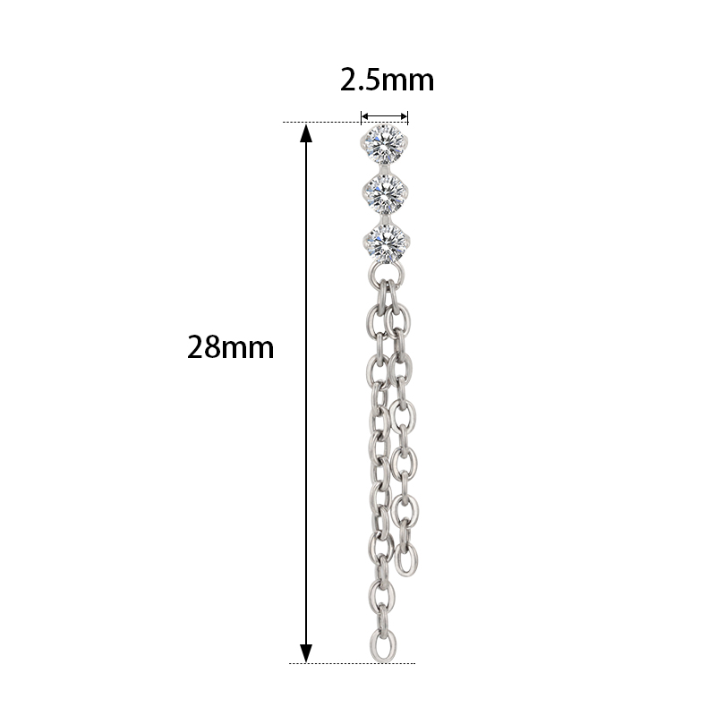 Titanium CNC Set 3 CZ With 2 Chain Dangle Inernally Threaded Top