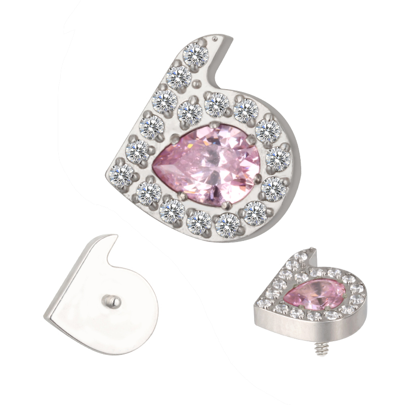 Titanium CNC Set Pear CZ Center With CZ Paved Surrounding Internally Threaded To