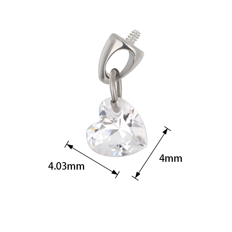 Titanium Spike With Single Heart CZ Dangle Internally Threaded Labret