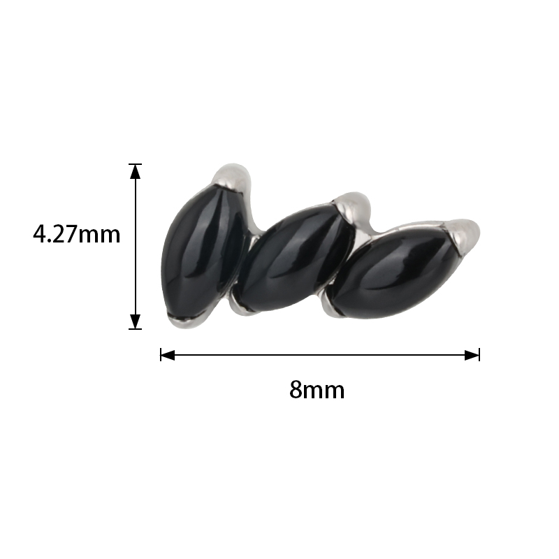 Titanium 3 Prong Set Marquise Natural Stone Curved Fan Internally Threaded Top