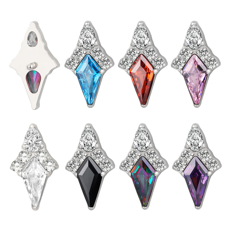 Titanium CNC Set Kite CZ and Tear Drop CZ Combined Inernally Threaded Top