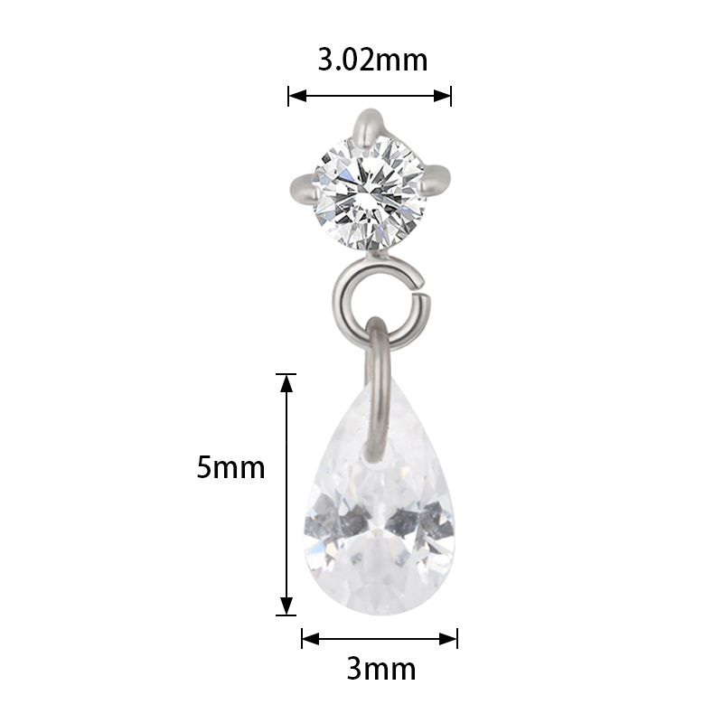 Titanium Prong Set CZ With Tear Drop CZ Dangle Internally Threaded Labert