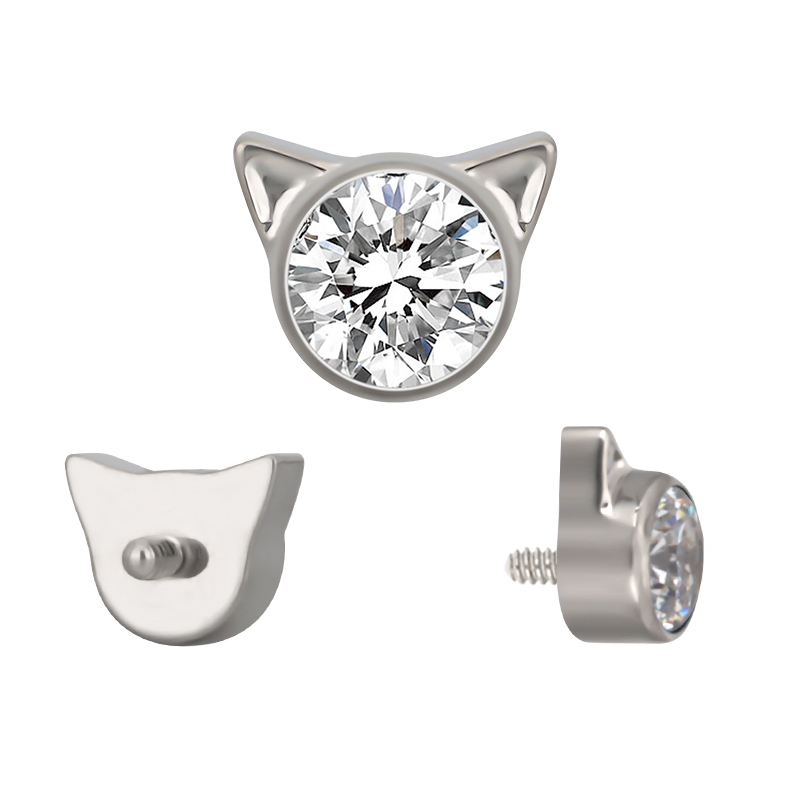 Titanium Kitty Ears With CZ Center Internally Threaded Top