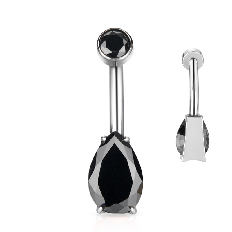 Titanium Bezel Set CZ Top and Pear CZ(6x8mm) Stone Back Belly Button Rings