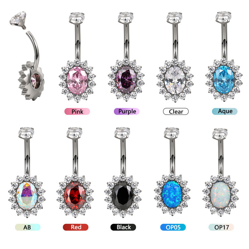 Titanium Bezel Set CZ Top With Oval CZ Center Flower Belly Button Ring