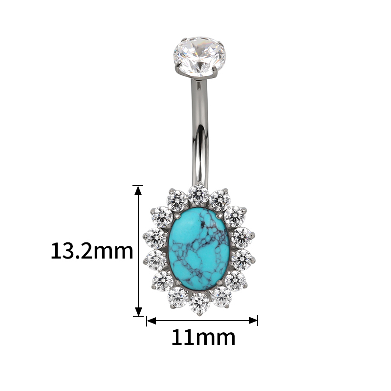 Titanium Bezel Set CZ Top With Oval Natural Stone Center Flower Belly Button Rin