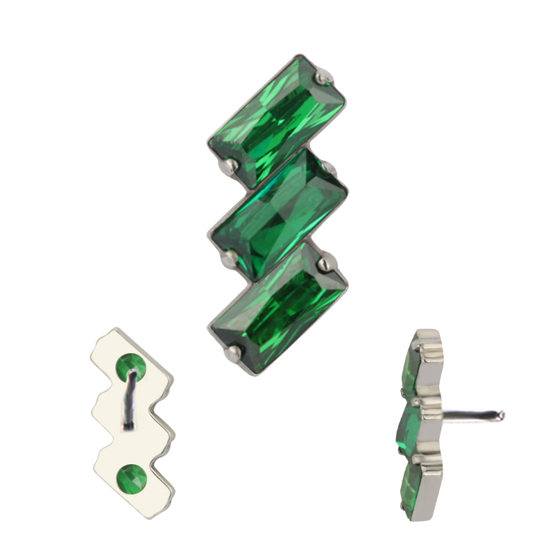 Titanium Push In 3 Bezel Set Rectangles CZ Threadless Top