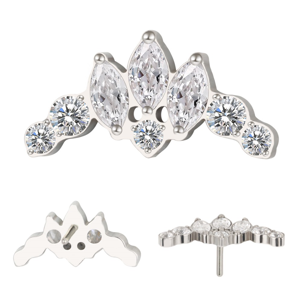 Titanium Push In 3 Prong Set Marquise CZ With 5 Round CZ Threadless Top