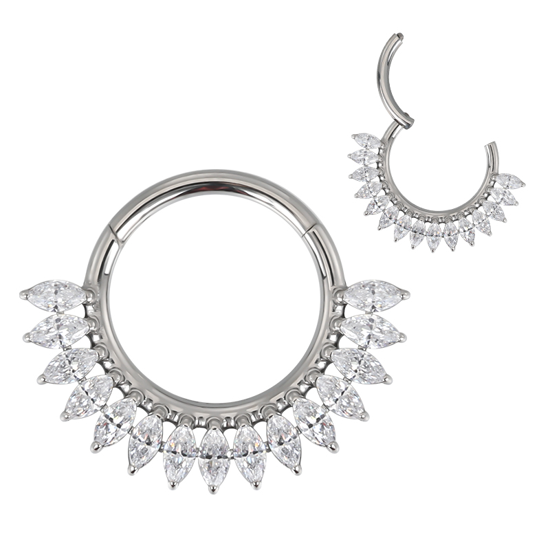 Titanium Hinged Segment Hoop With Forward Facing Half Circle Marquise CZ Fan
